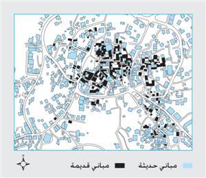من خلال العمل الميداني الذي قام به مركز رواق العام 2000 ، تم تسجيل 212 مبنى قديماً في القرية يتألف معظمها ( 194 مبنى) من طابق واحد ( 91.51 %)، وباقي المباني